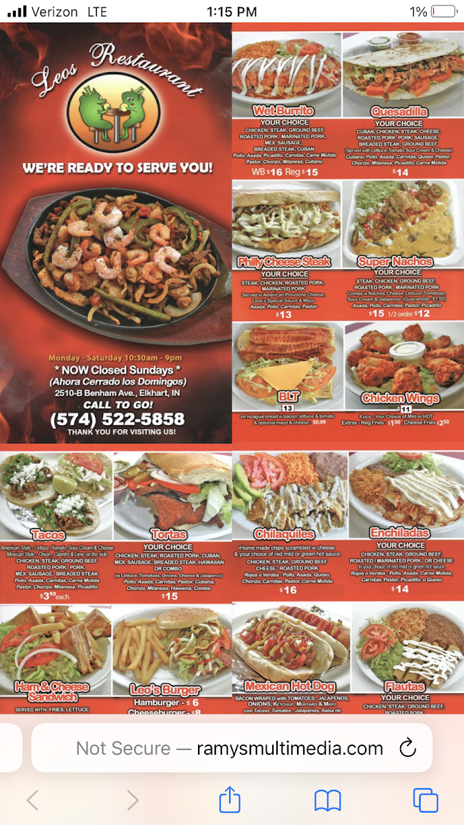 Welcome to Leo's Restaurant, a charming mom-and-pop establishment located at 2510 Benham Ave, Elkhart, IN. This eatery offers a delightful menu celebrated for its authentic Mexican cuisine and inviting atmosphere.